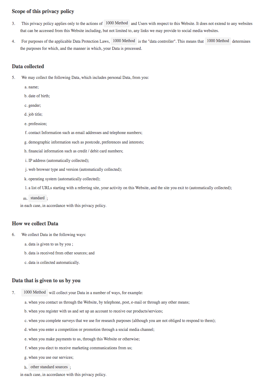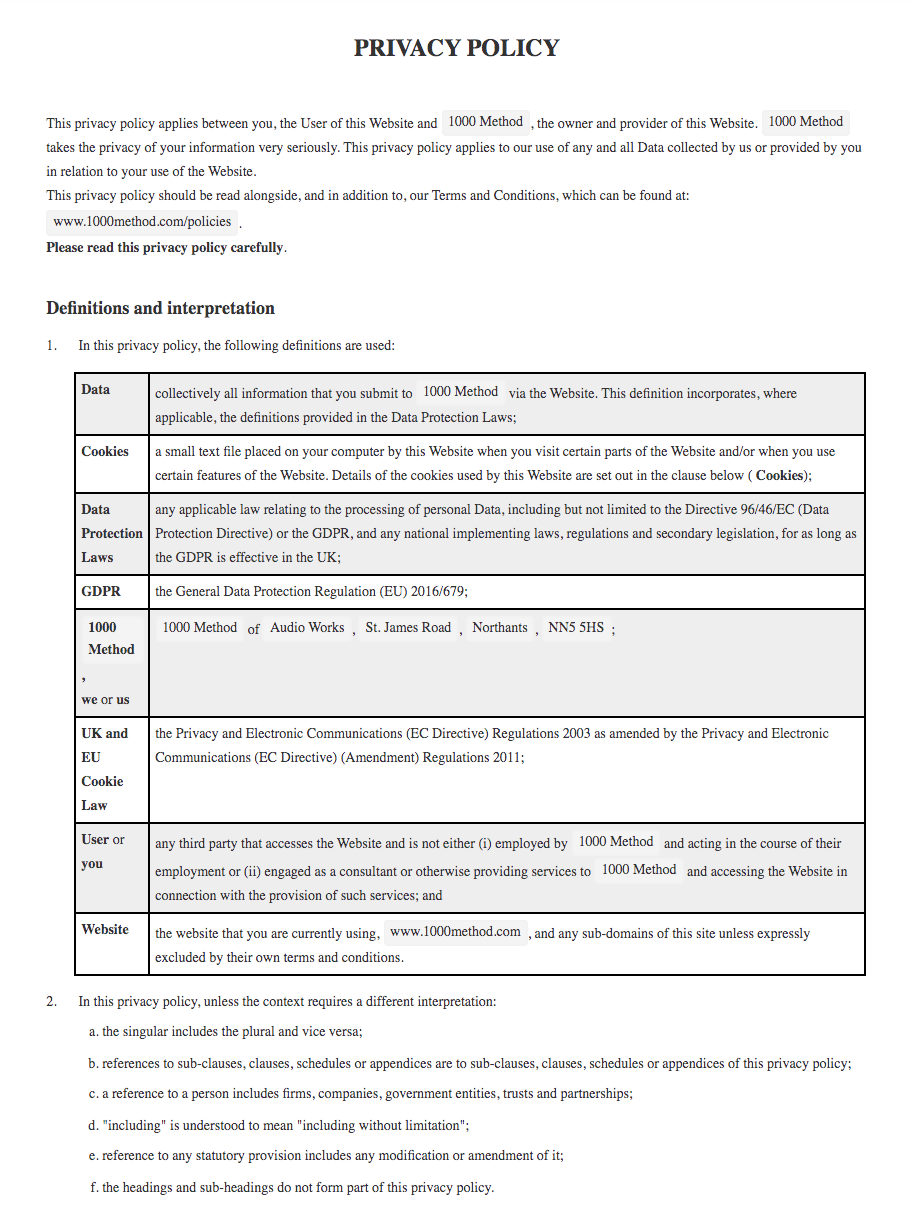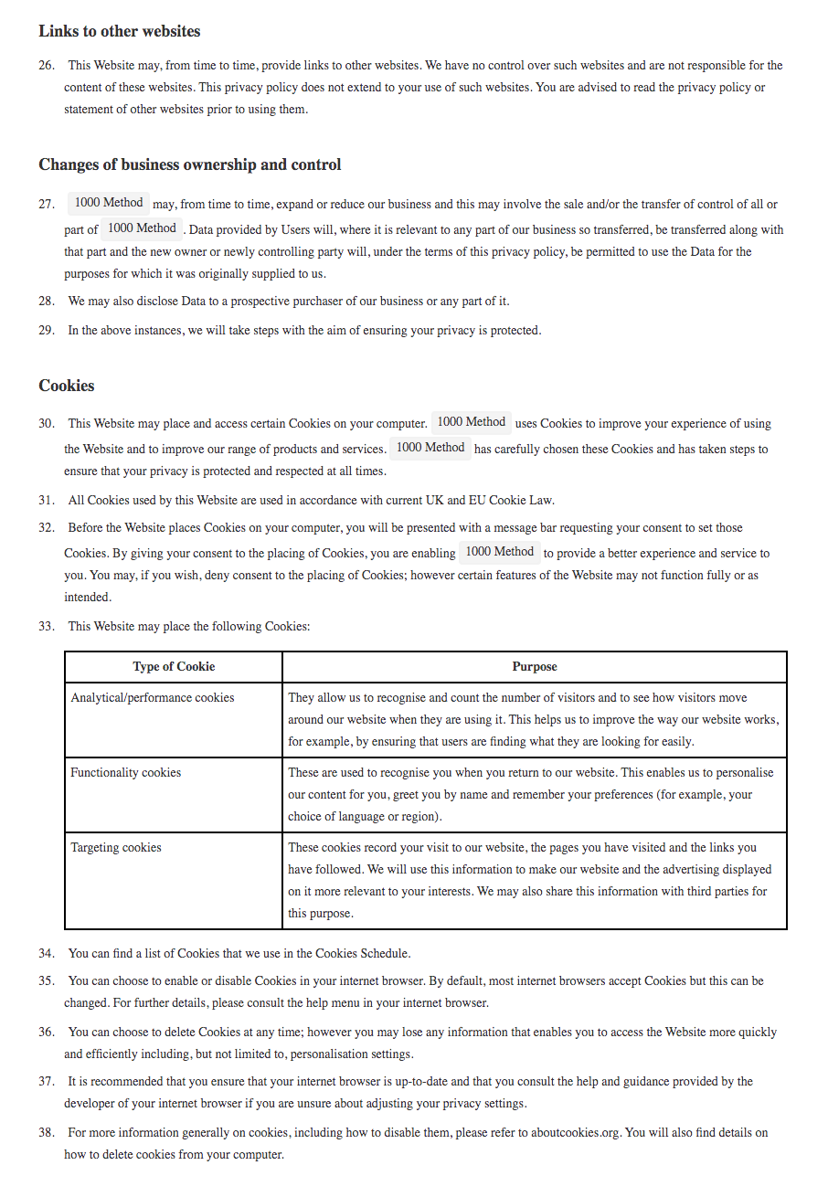 This website, http://www.1000method.com (the "Website"), is operated by 1000 Method. This Cookies Policy was created by Cookies Policy Template for http://www.1000method.com